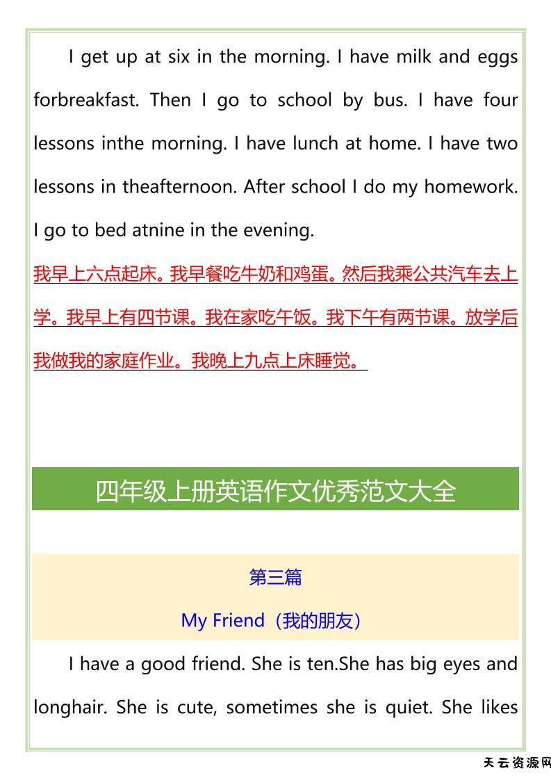 【2025秋新版】四年级上册英语作文优秀范文大全-天云资源网
