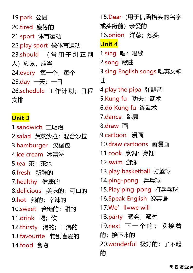 【2025秋新版】四升五年级上册英语单词汇总-天云资源网