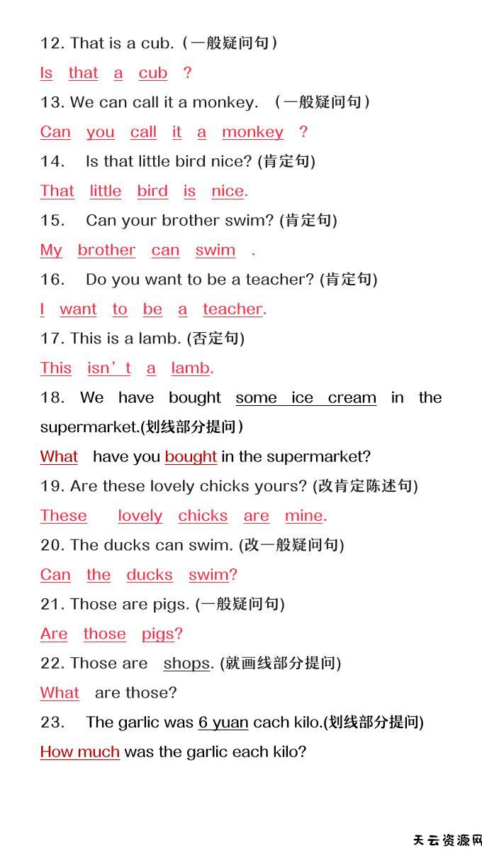 【2025秋新版】六年级上册英语必考句型转换-天云资源网