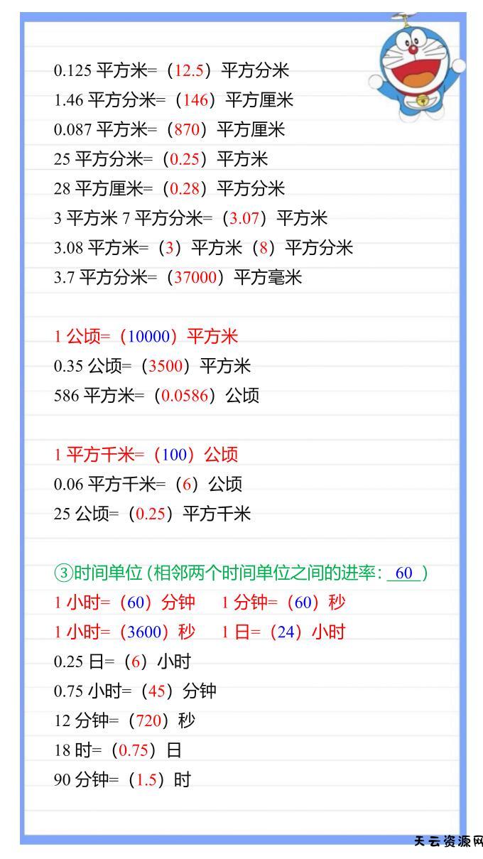 【2025秋新版】五年级数学上册《单位换算》专项练习大全-天云资源网