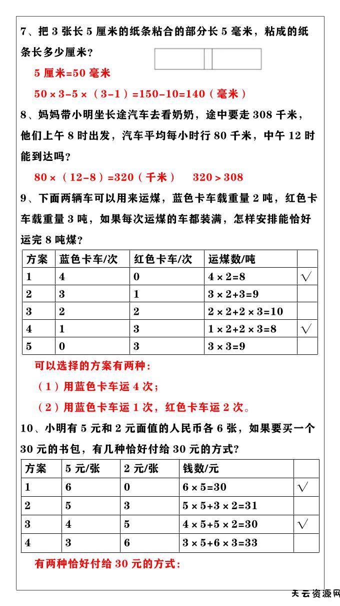 【2025秋新版】三年级上册数学重点应用题专项练习-天云资源网