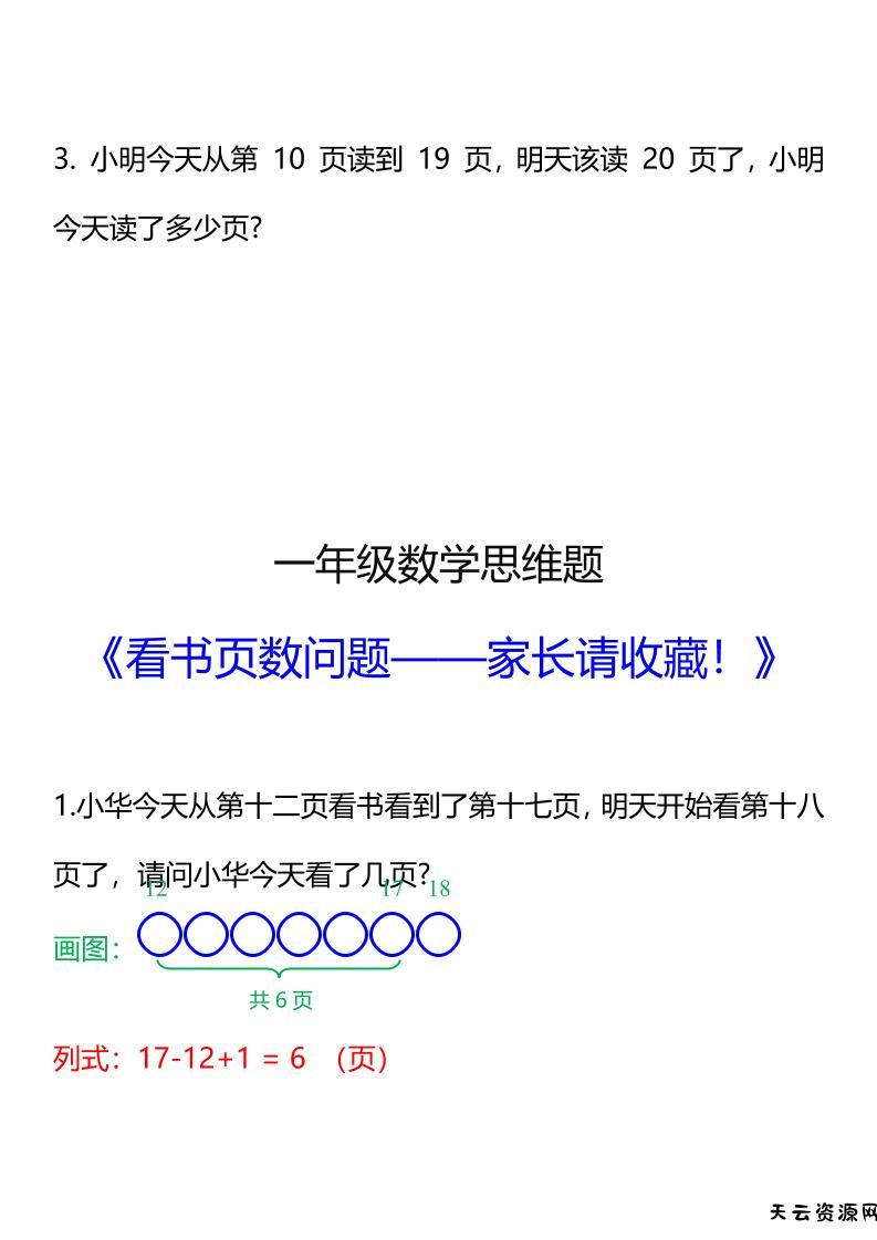 【2025秋新版】一年级数学看书页数问题思维训练题-一上数学-天云资源网