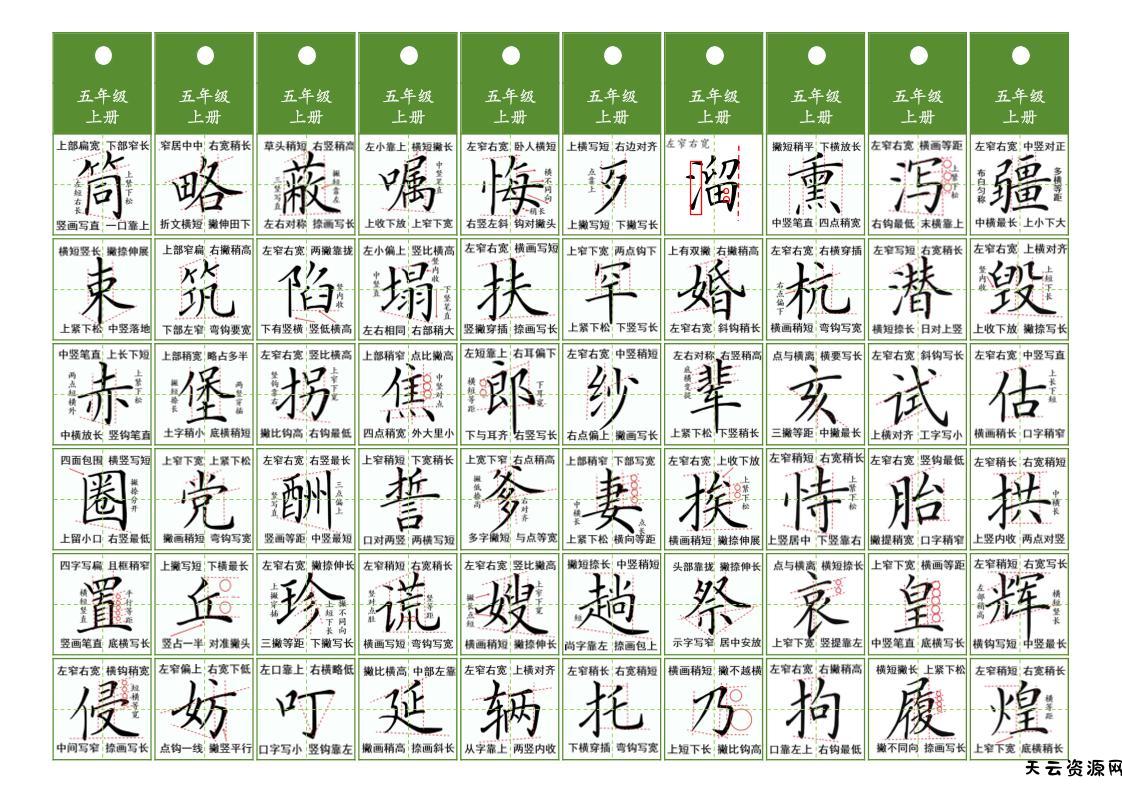 五年级上语文同步精讲字卡(共7页)-天云资源网