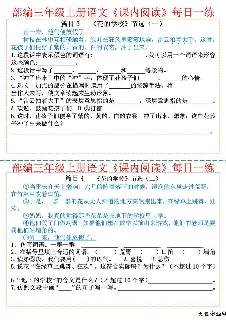 三上语文【25秋-课内阅读每日一练30篇(含答案22页)】-天云资源网