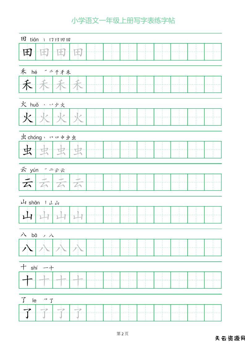 一年级语文上册一字三描红写字表字帖-天云资源网