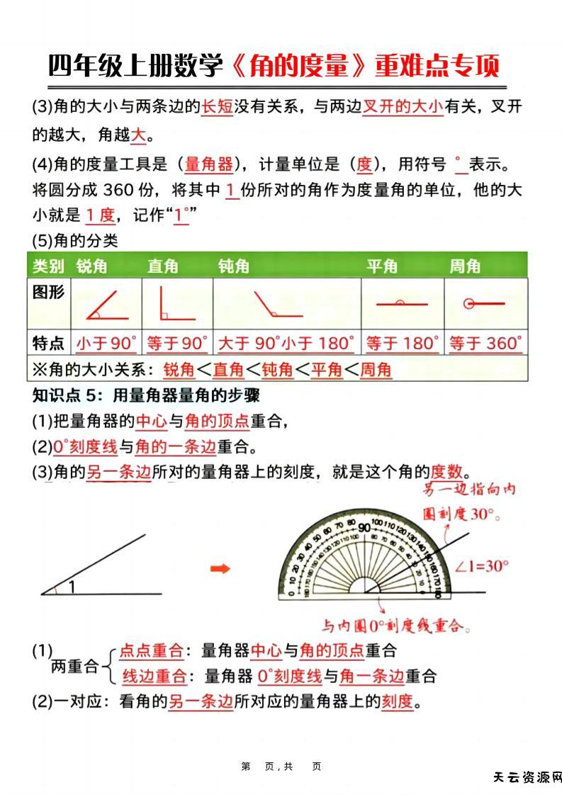 四上数学《角的度量》重难点专项(含答案16页)-天云资源网