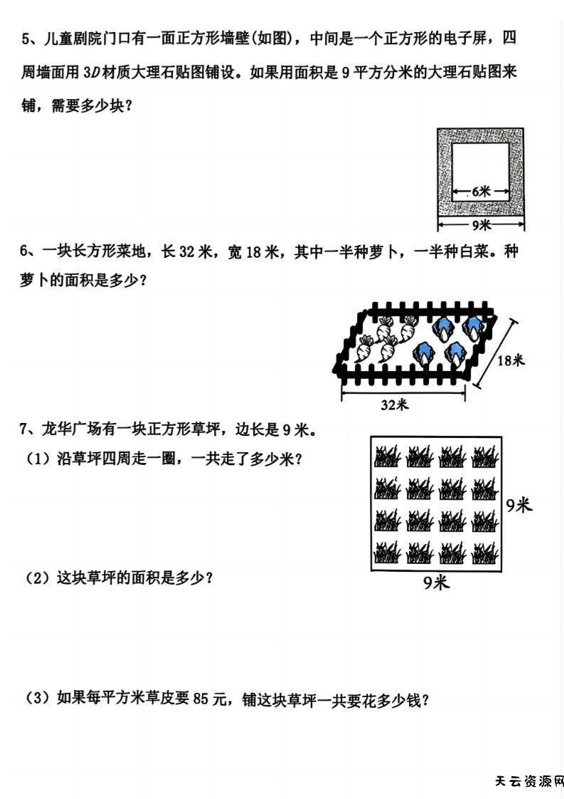 三上数学《数学周长应用题》三年级上册-天云资源网