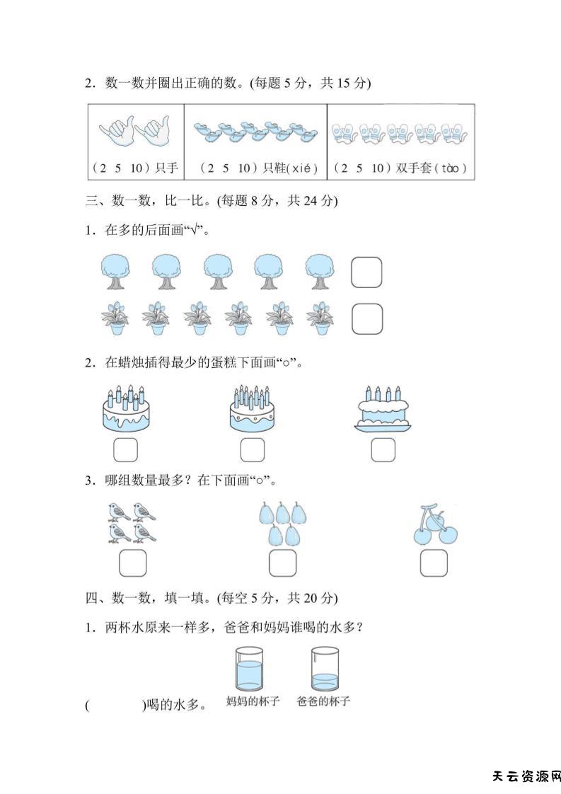 一上数学能力检测卷-数数与比多少-天云资源网
