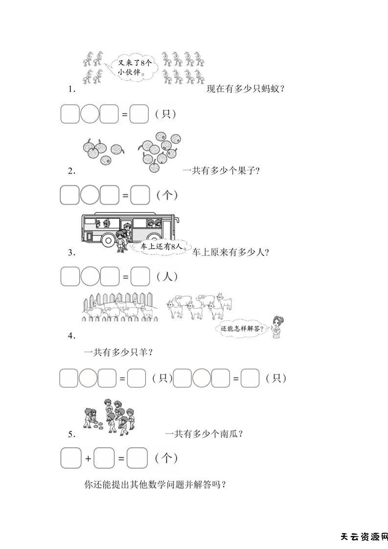 一上数学能力检测卷-20以内的进位加法应用-天云资源网