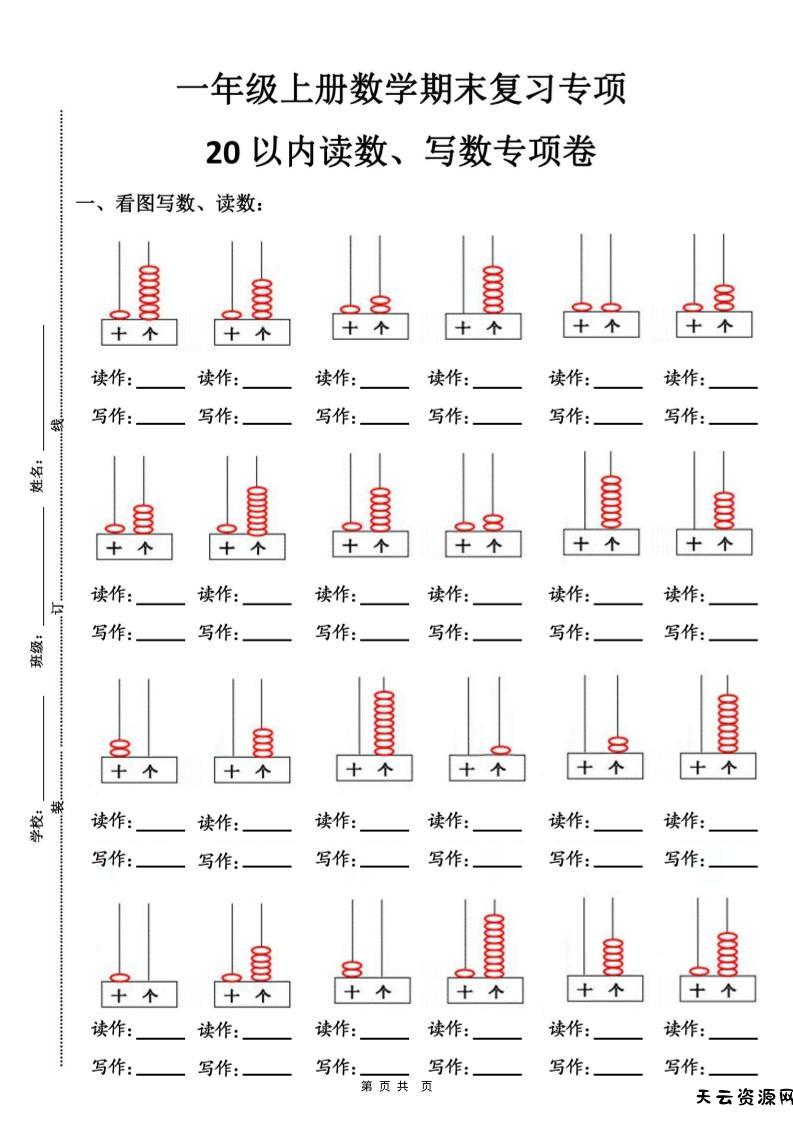 一年级上数学9大题型-专项练习-天云资源网