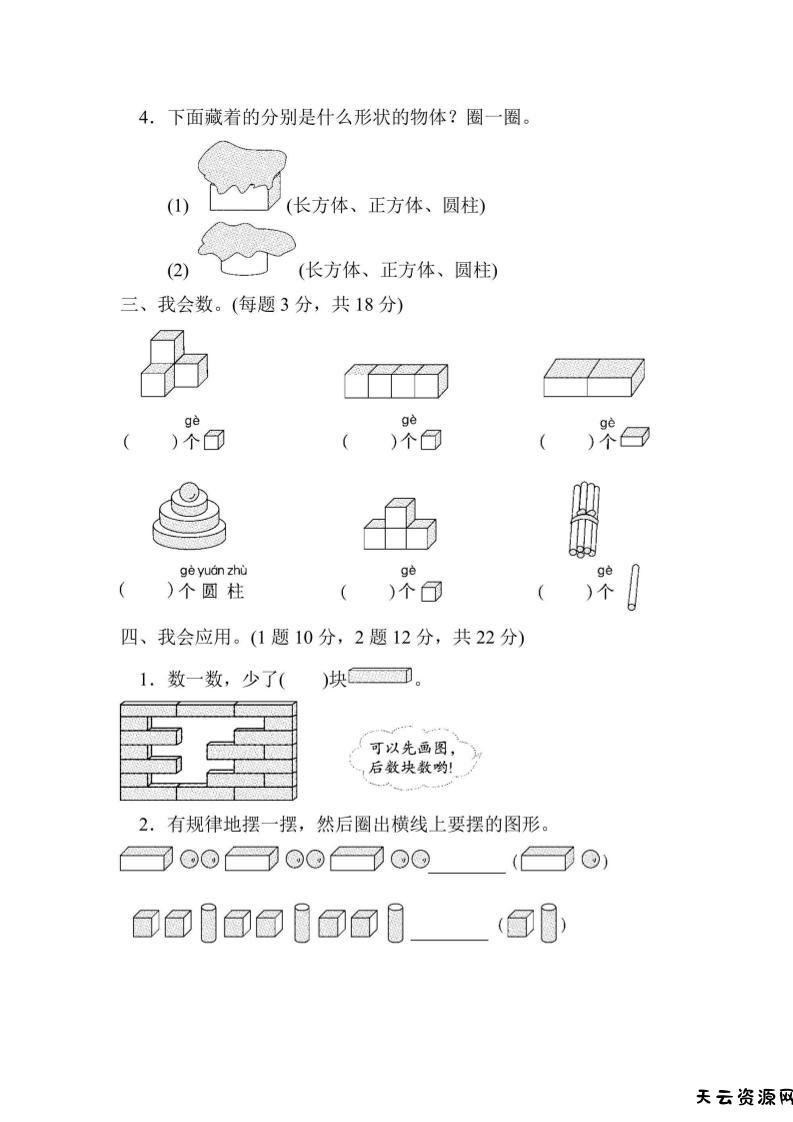 一上数学方法技能提升卷2初步的空间想象能力-天云资源网