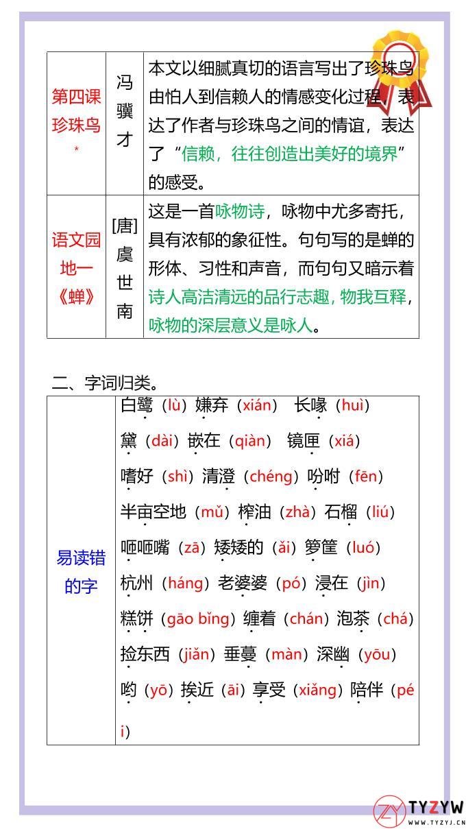 【2025秋新版】五年级语文上册《第一单元》高频考点汇总!-天云资源网