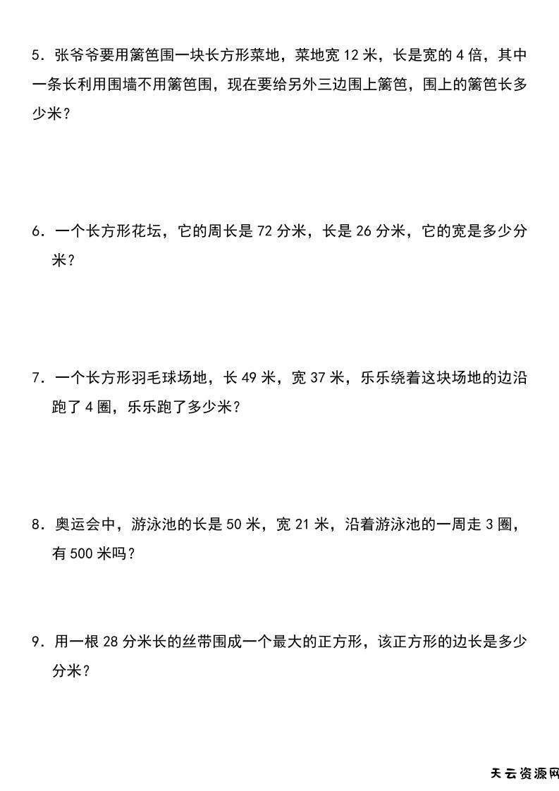 三年级上册数学长方形和正方形专项突破-含答案-天云资源网