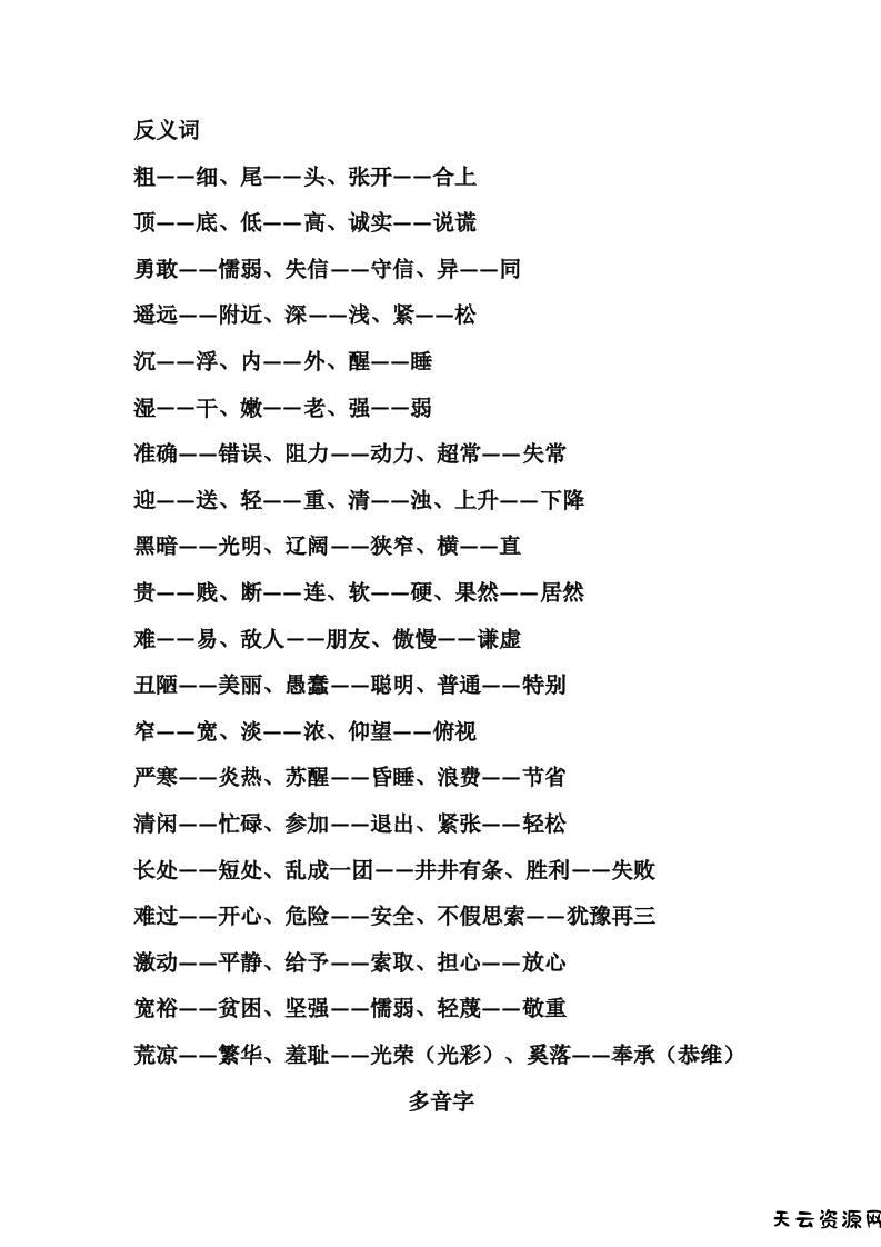 三上语文-词语积累汇总复习-天云资源网