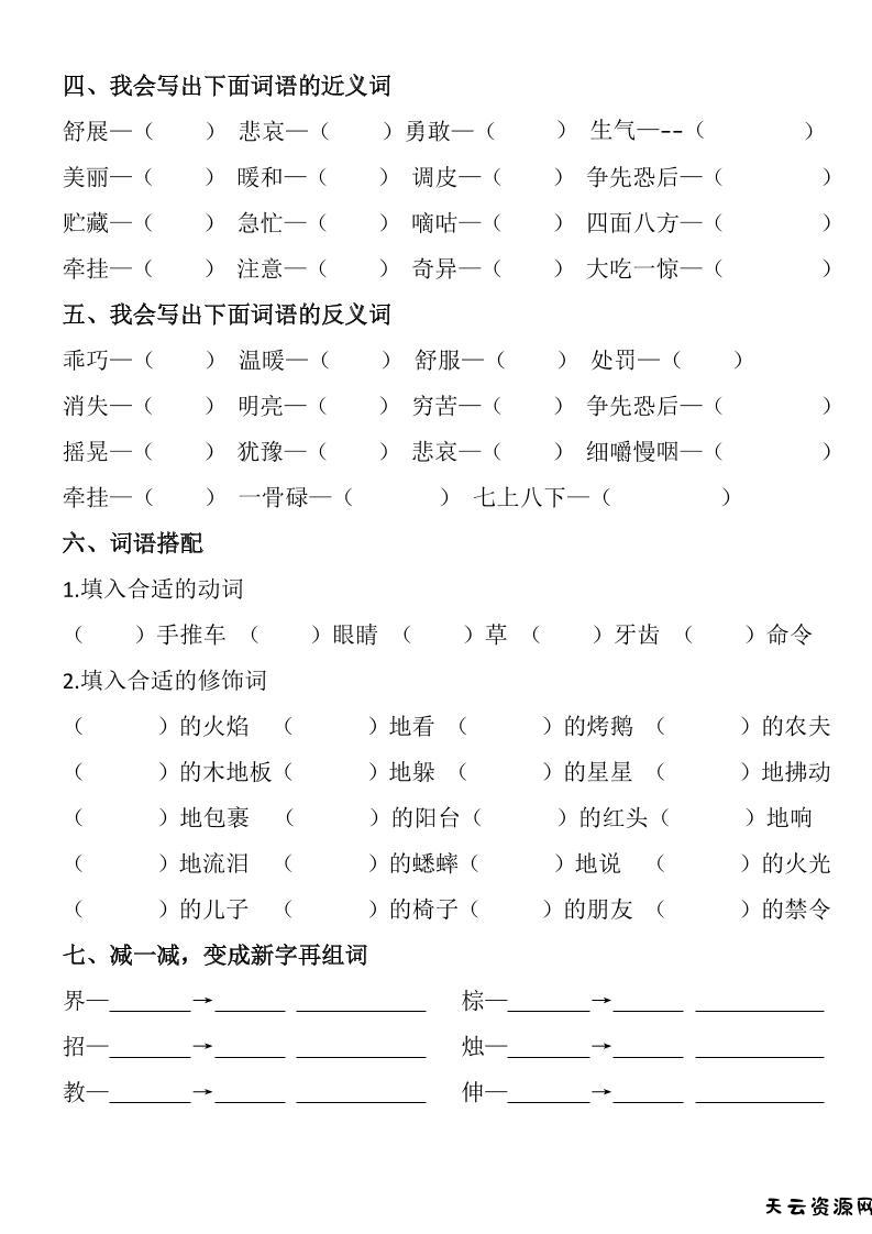 三年级上册《语文第三单元基础知识练习》-天云资源网