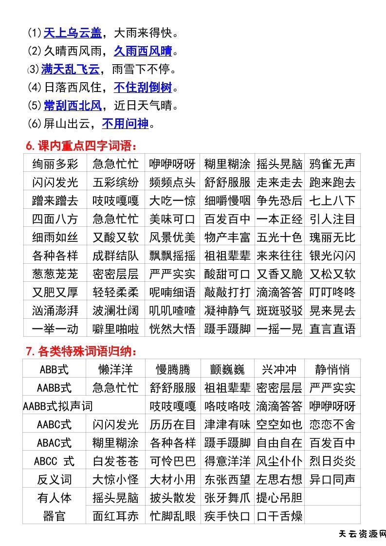 三年级上册语文期末必考高频知识点梳理-天云资源网