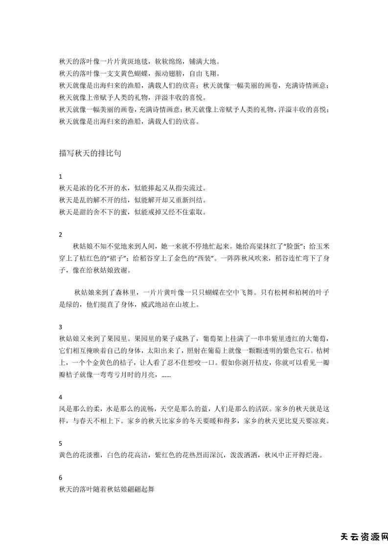 三上语文-描写《秋天》的比喻句和排比句-天云资源网