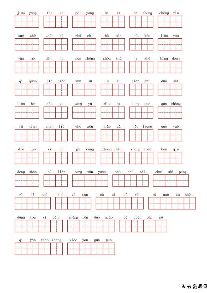 看拼音写词语三年级上册语文第八单元-天云资源网