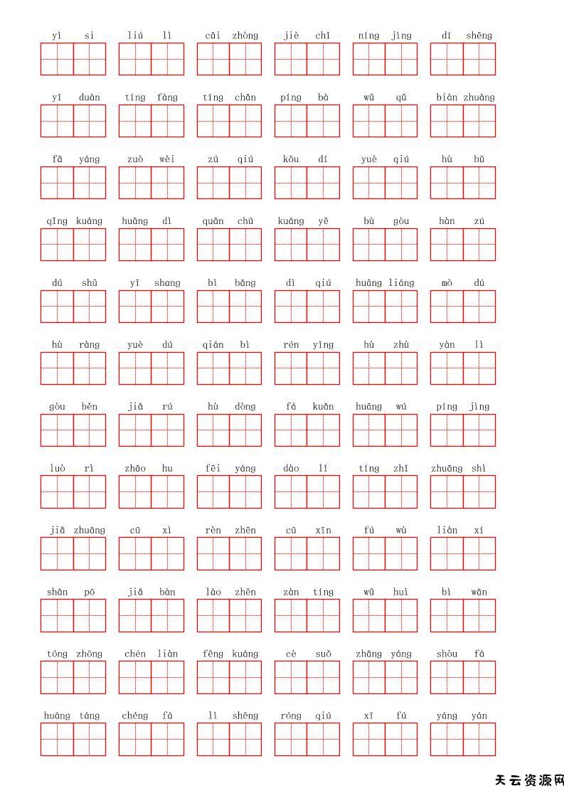 看拼音写词语三年级上册语文第一单元-天云资源网
