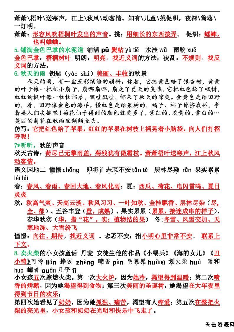 三年级语文上册期末考前冲刺必背知识点名师总结-天云资源网