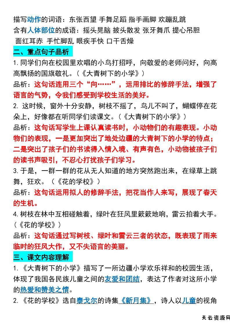 三年级上册语文1-4单元期中高频考点梳理-天云资源网