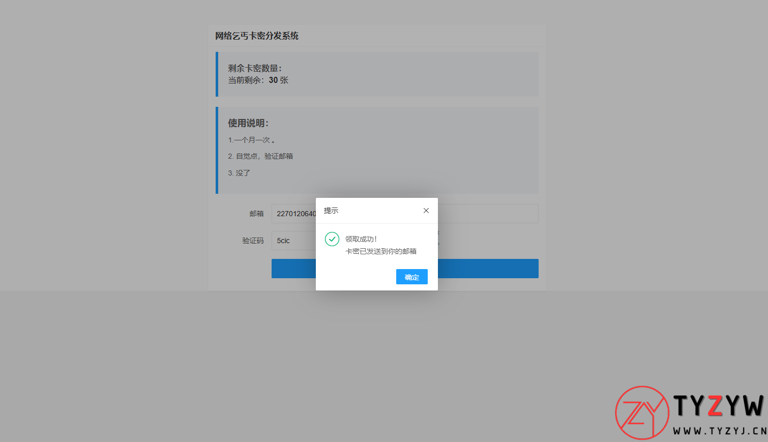 1.前台:直接访问域名就可以到达前台,使用邮箱进行领取。领取需要输入验证码,防止多次请求接口造成接口拥堵