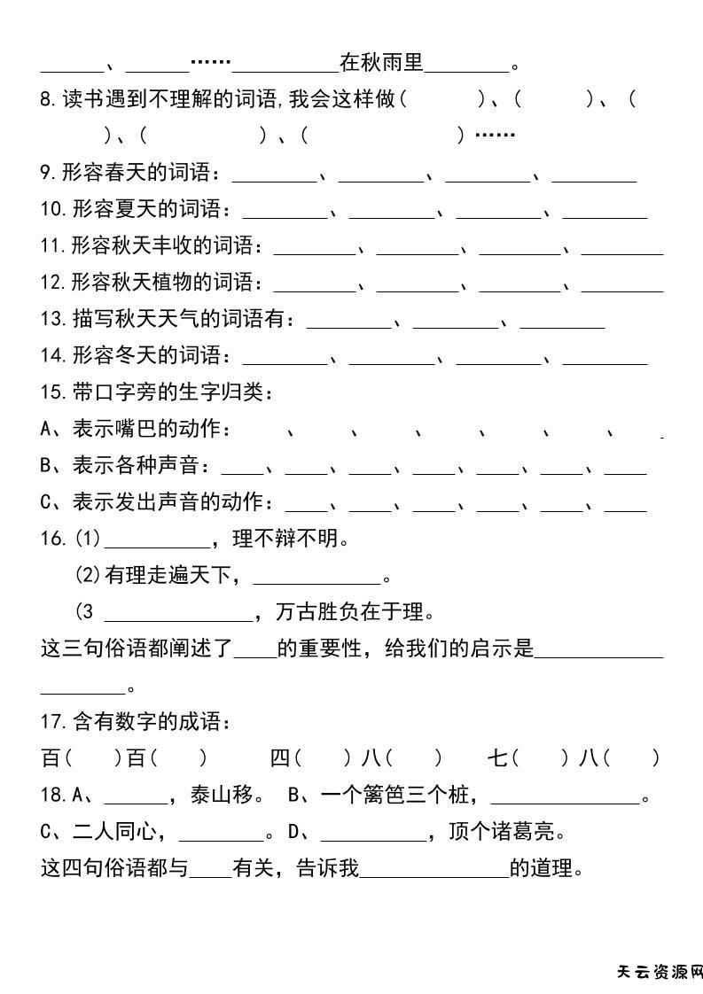 三年级语文上册背诵并默写内容汇总练习-天云资源网