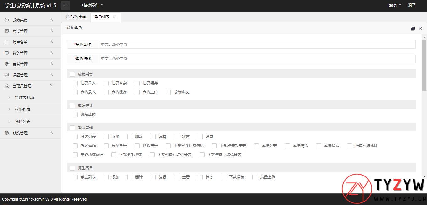 根据职务、教研组长、班主任、教师任务分工、管理员控制数据权限
