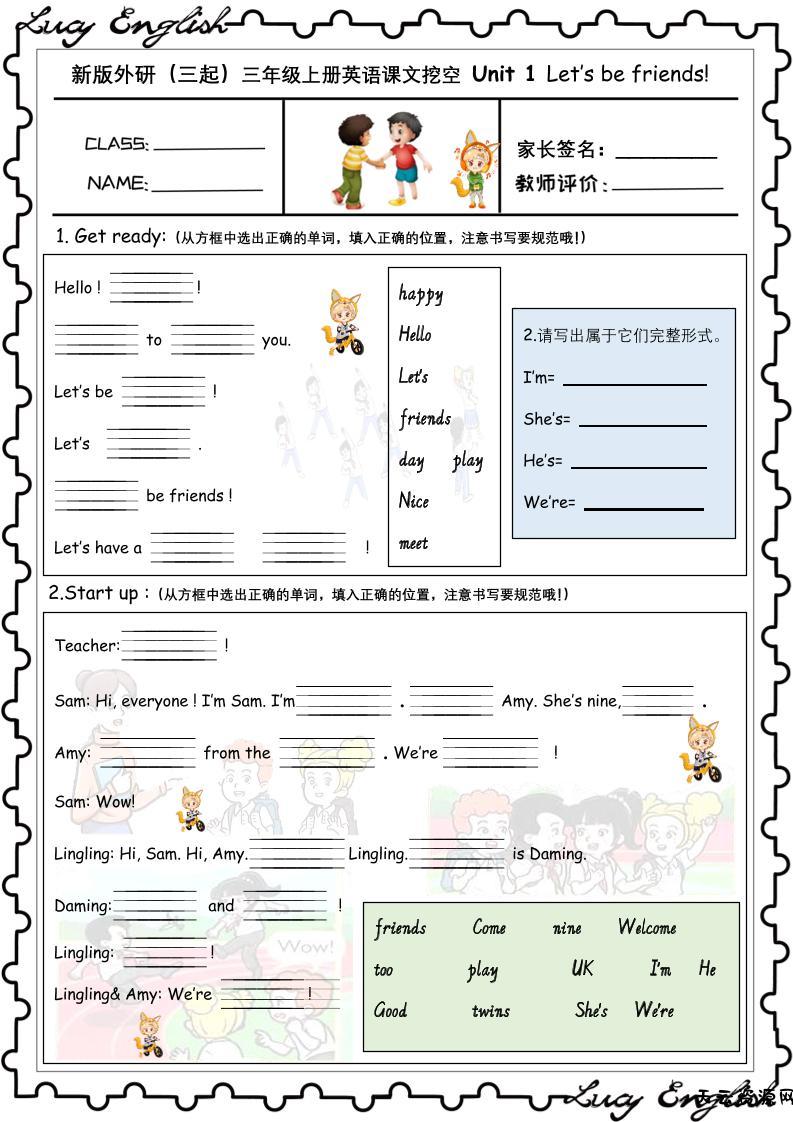 新版外研版(三起)三上英语U1-U6课文挖空专项训练附答案-天云资源网