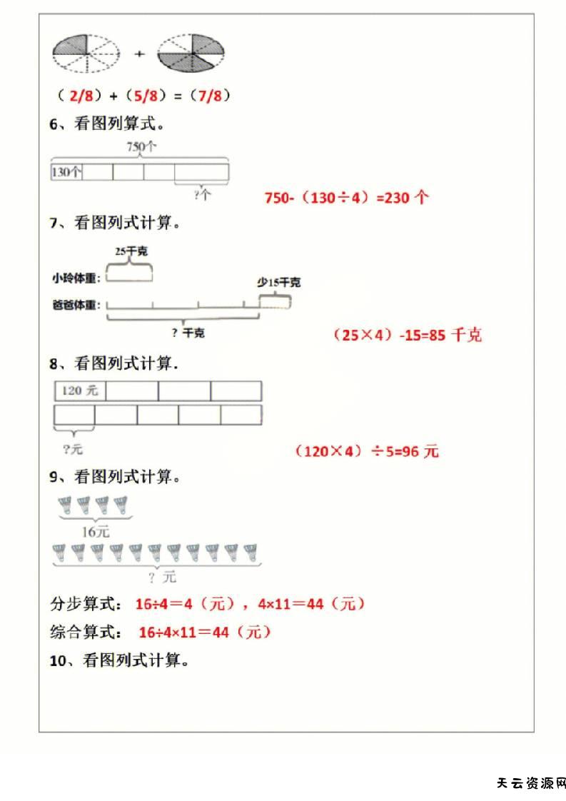 三年级上册数学倍的认识线段图列式计算-天云资源网