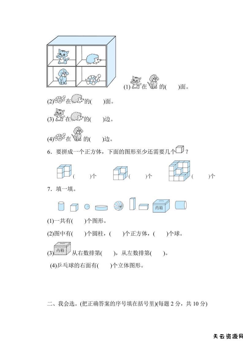 一上数学能力冲刺检测卷3几何、位置、钟表-天云资源网