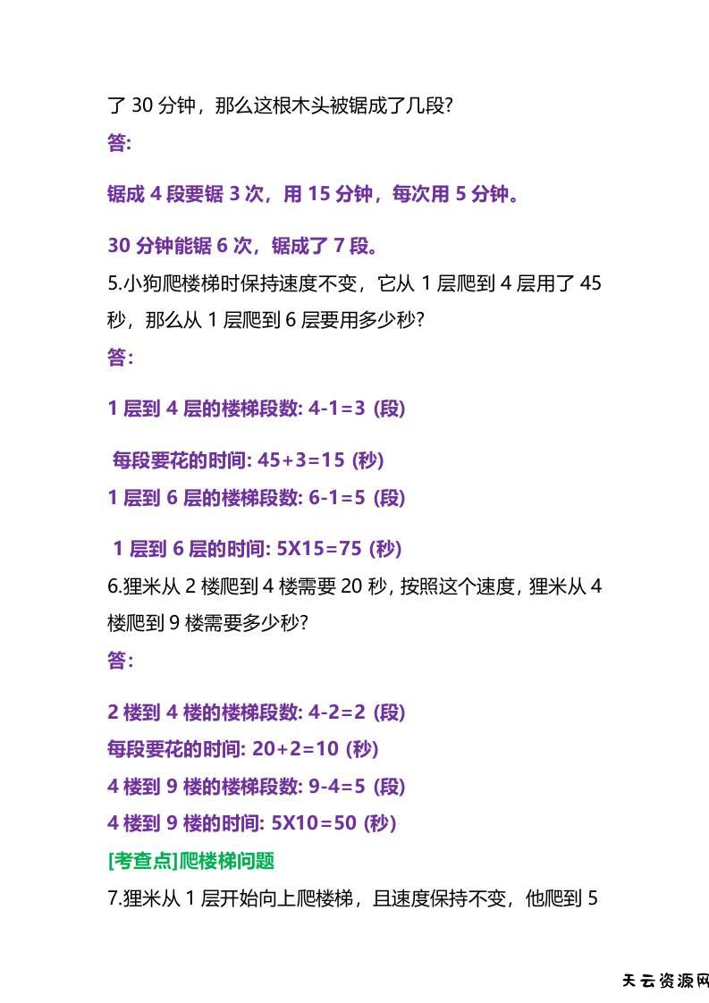 三年级上册数学必考重点锯木头和爬楼梯问题-天云资源网