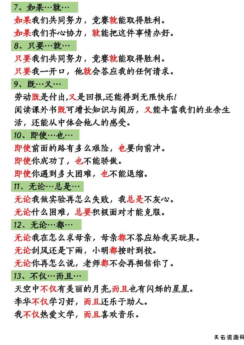 三上语文造句举例.关联词.常见扩句-天云资源网