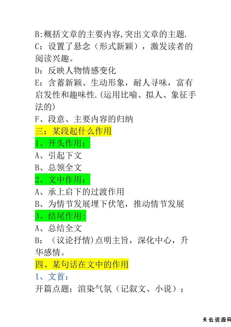 三上语文-阅读理解通用16条公式-天云资源网