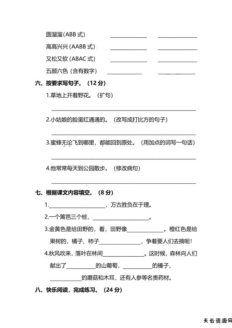 部编版三年级上语文期末测试卷(五)及答案-天云资源网