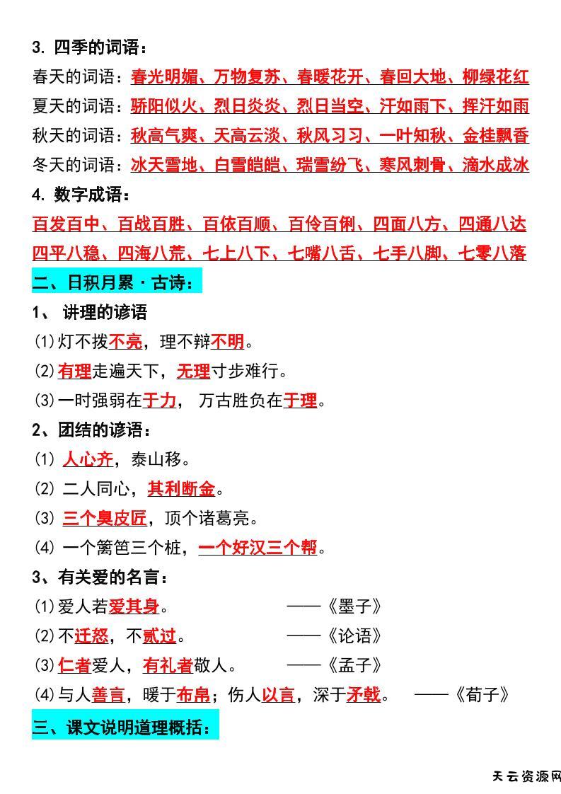 三年级上册语文期末复习高频知识汇总-天云资源网