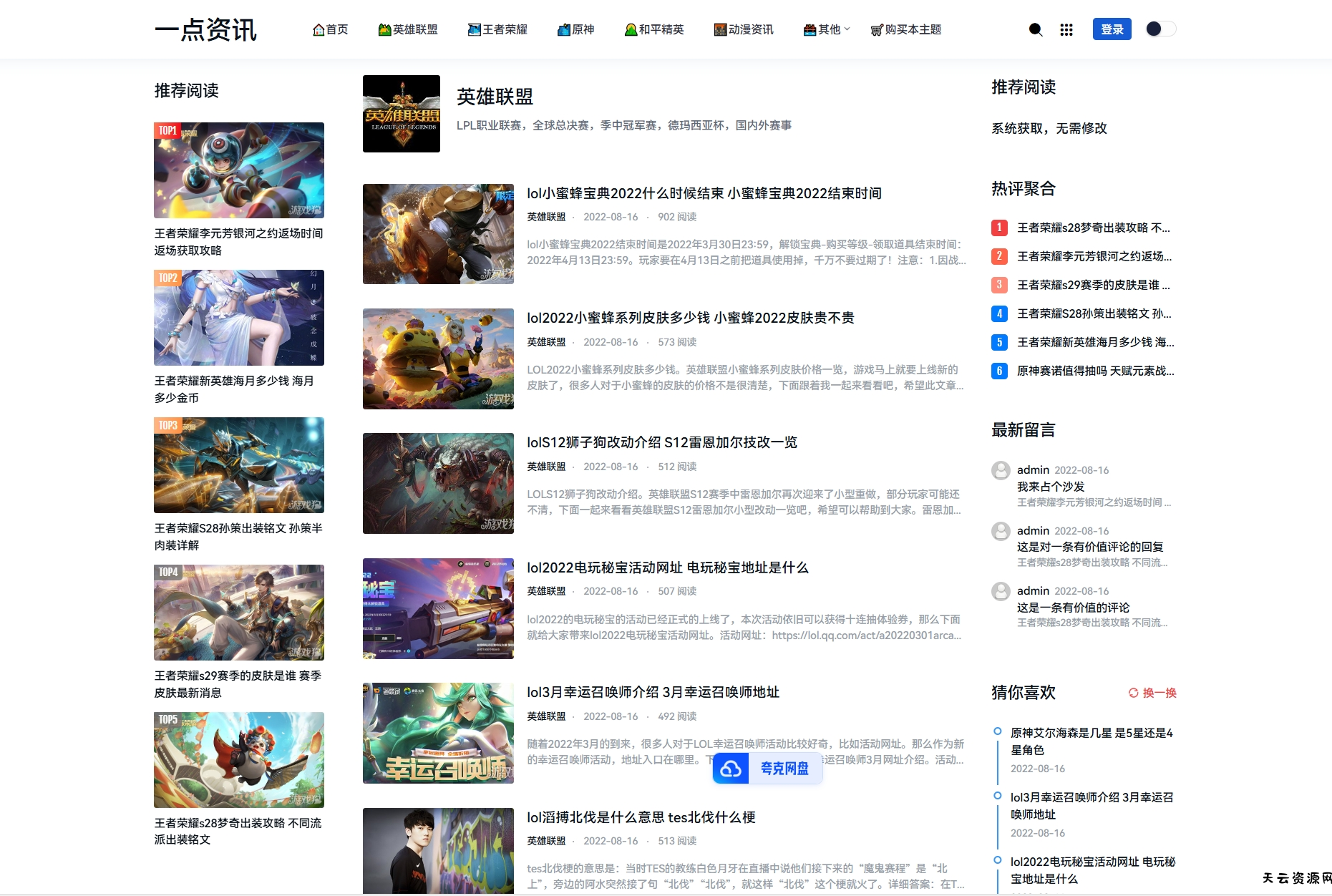 游戏攻略新闻资讯主题模板源码 YK一点资讯模版 zblog主题模版