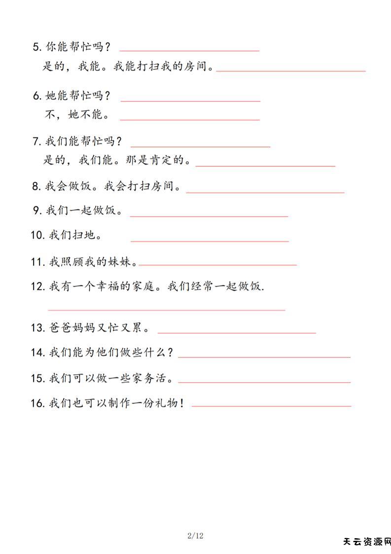 四年级上人教PEP版英语基础知识默写单-天云资源网