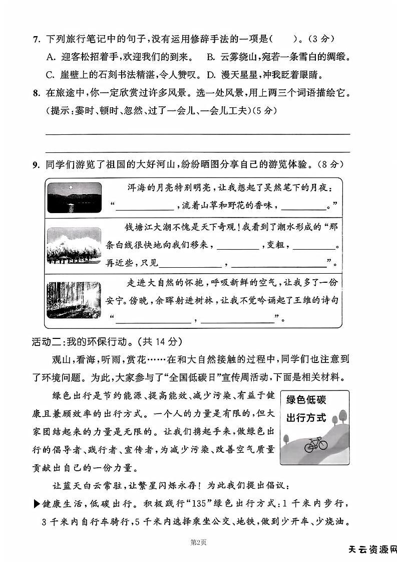 25学年四上语文第一单元拔尖测试卷-盼望(含答案5页)-天云资源网