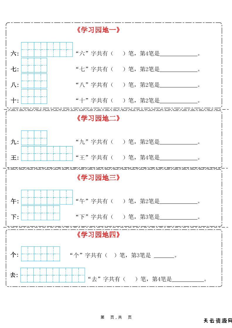 25新一上语文笔画笔顺每日一练(8页)-天云资源网