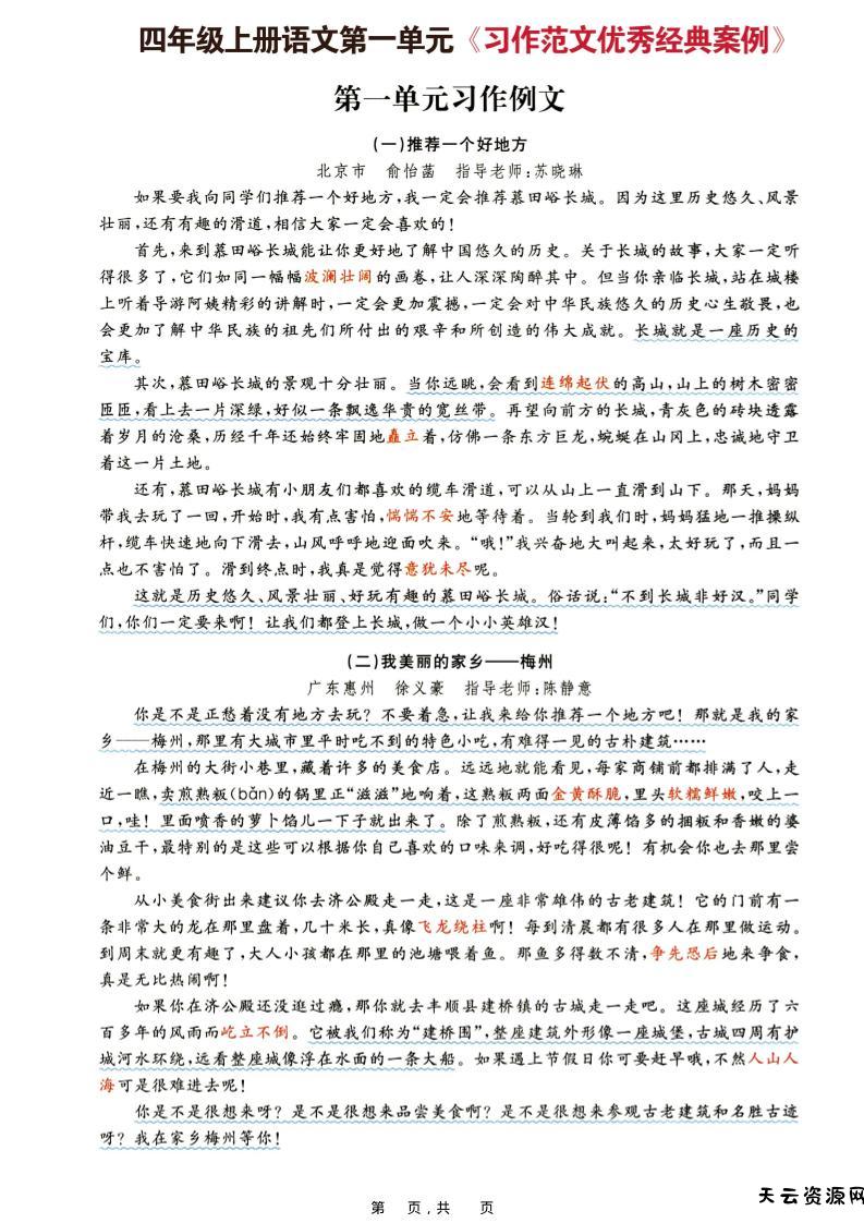 四上语文1-8单元习作思路步骤+重点提示+优秀范文(16页)-天云资源网
