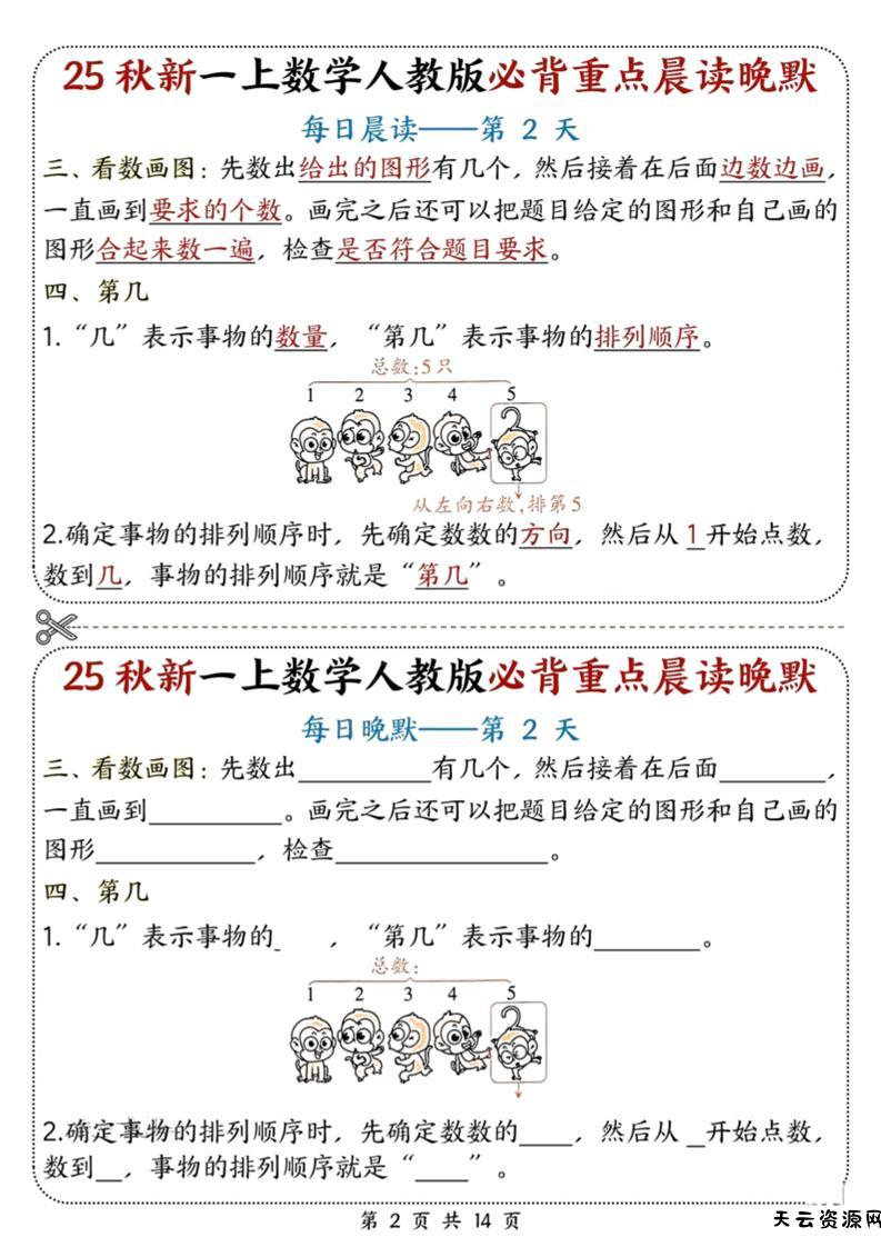 25秋新一上数学必背重点晨读晚默(人教版14页)-天云资源网