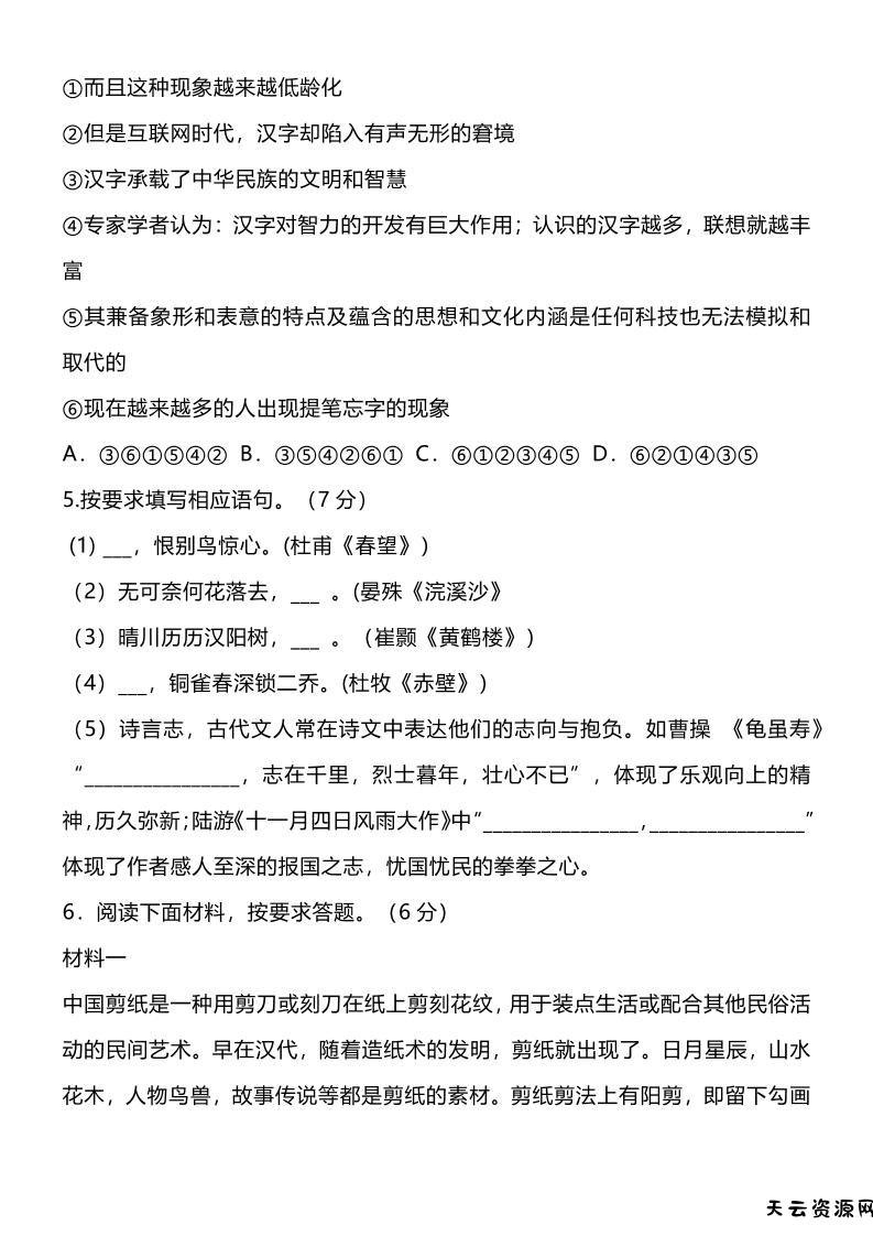 【2025秋新版】八年级语文上学期期末试题-天云资源网
