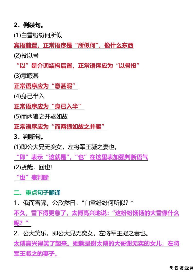 【2025秋新版】七年级上册语文文言文期末考点整理-天云资源网