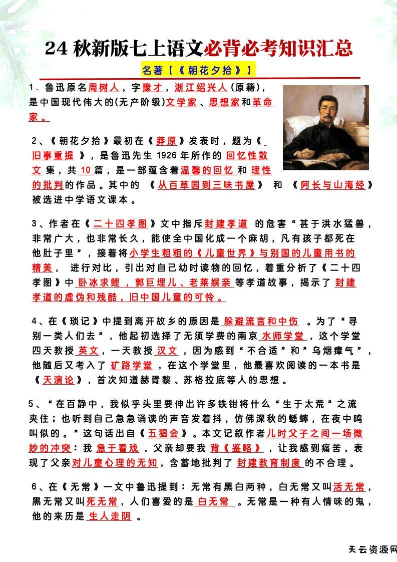 【2025秋新版】七上语文必背必考知识汇总-天云资源网