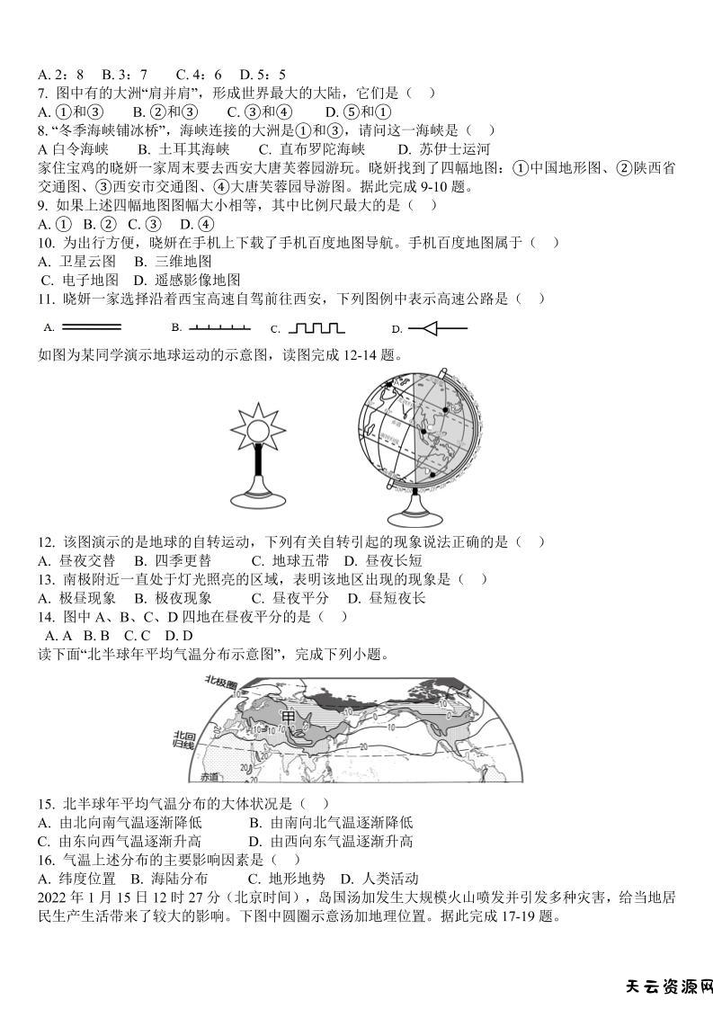 【2025秋新版】七年级上学期地理期末真题试卷-天云资源网