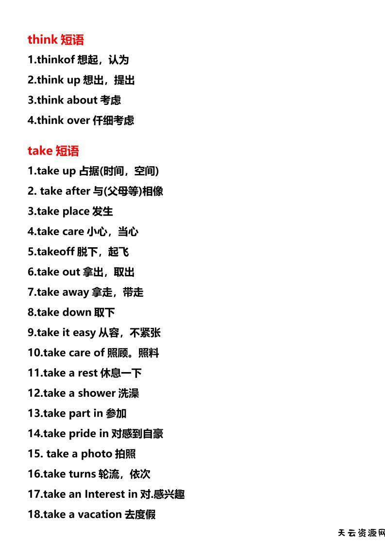 【2025秋新版】七年级上册英语期末常考短语总结-天云资源网