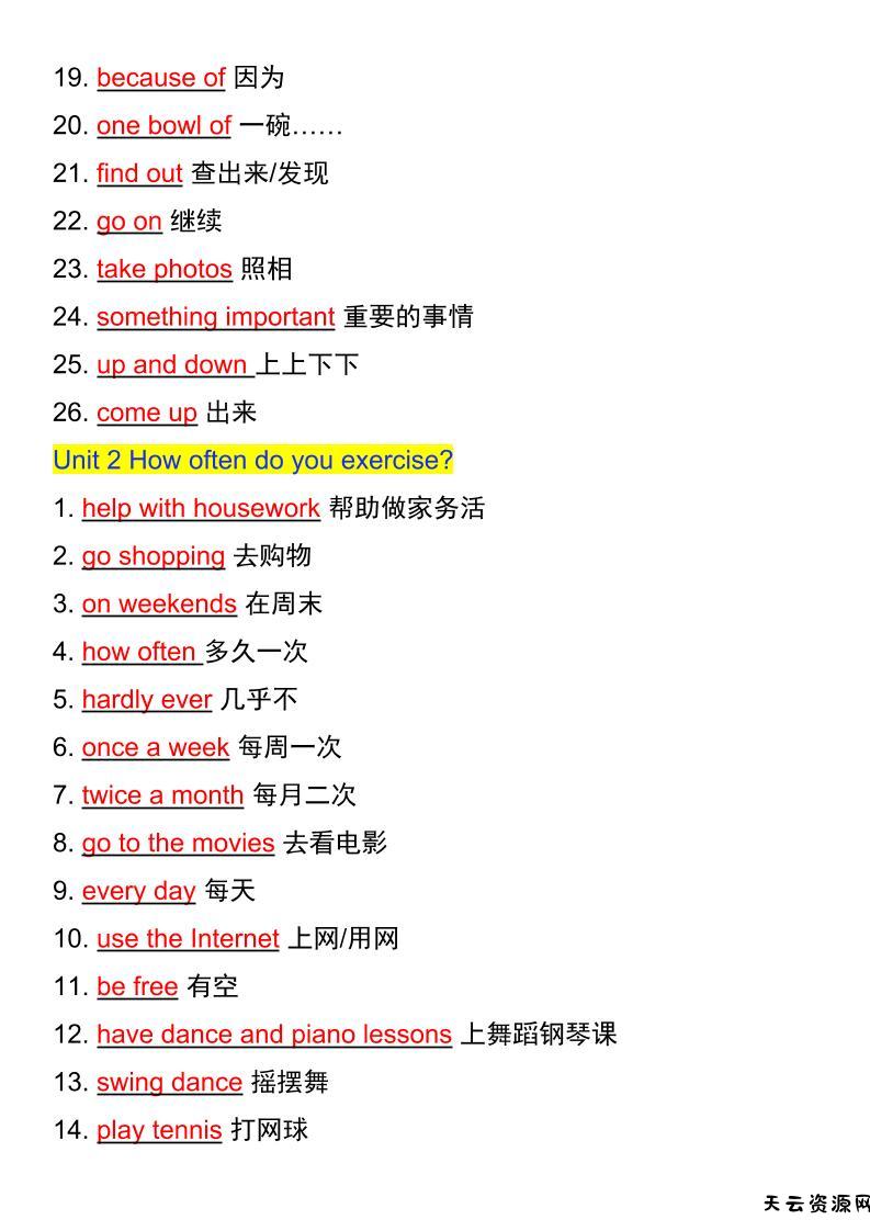 【2025秋新版】八年级英语上册期末复习重点短语归纳-天云资源网