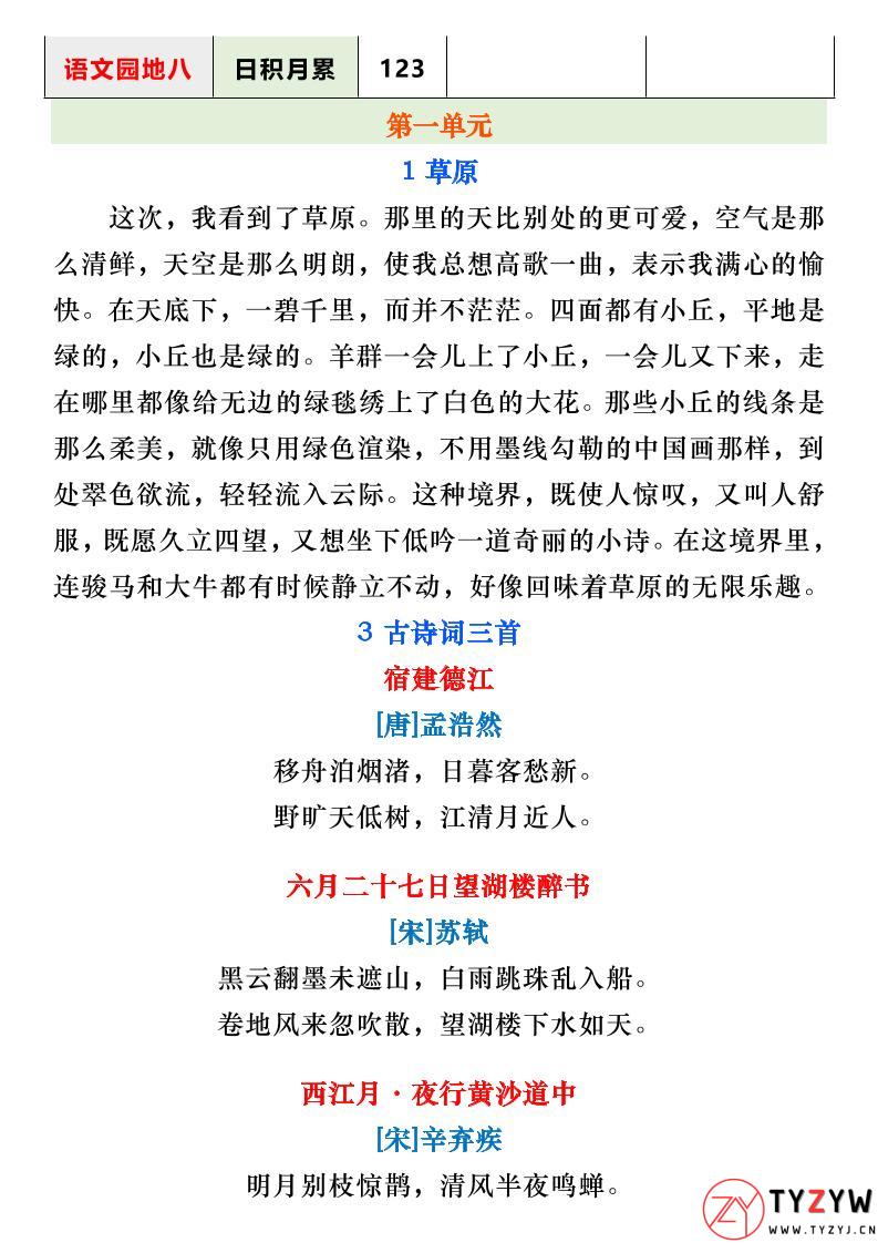 【2025秋新版】六年级语文上册必背课文内容古诗和日积月累-天云资源网
