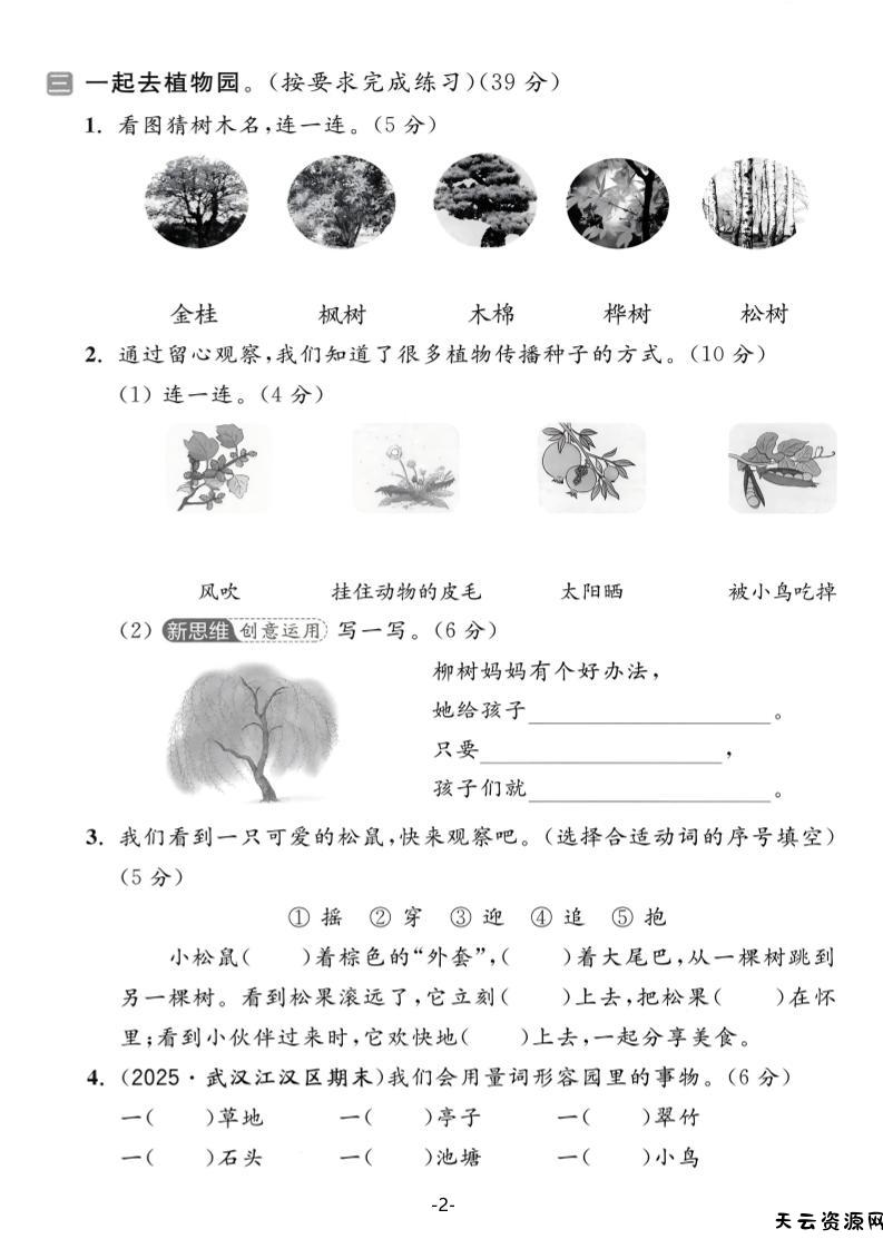 25学年二上语文第一次月考达标测试卷(含答案5页)-天云资源网